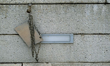 Ich folge dem der Sonne zugewandten Säulengang und bleibe am Ende des Gangs etwas verdutzt stehen... Eigenartig: durch Pfeiler des Peripteros vergitterter Blick auf den »Museumstempel« und – vielleicht – auch noch ein Schild mit der Aufschrift »Für Unbefugte ist der Zutritt verboten«? |