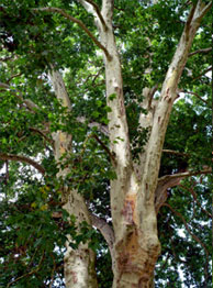 | Ich verlasse den gepflasterten Weg und betrete eine große Wiesenfläche, auf der offenbar nach einem heftigen Wind zahlreiche Blätter, kleinere abgebrochene Zweige und Baumrindenstücke weit verstreut liegen, und nähere mich langsam einer hainähnlichen Baumgruppe... |